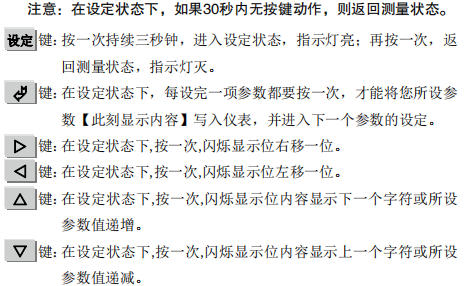 共有六個(gè)使用鍵,其中有測量狀態(tài)使用鍵和設(shè)定狀態(tài)使用鍵, 選用優(yōu)質(zhì)薄膜觸摸式鍵盤,按鍵時(shí)伴有清脆的蜂音。