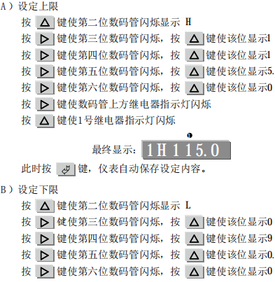 偏差上限是指超過上限的偏差值,實(shí)際報(bào)警值=上限+偏差上限。例: 上限為115.0℃,偏差上限為4.0℃ 實(shí)際報(bào)警值=115+4=119℃ 偏差下限是指超過下限的偏差值,實(shí)際報(bào)警值=下限-偏差下限。