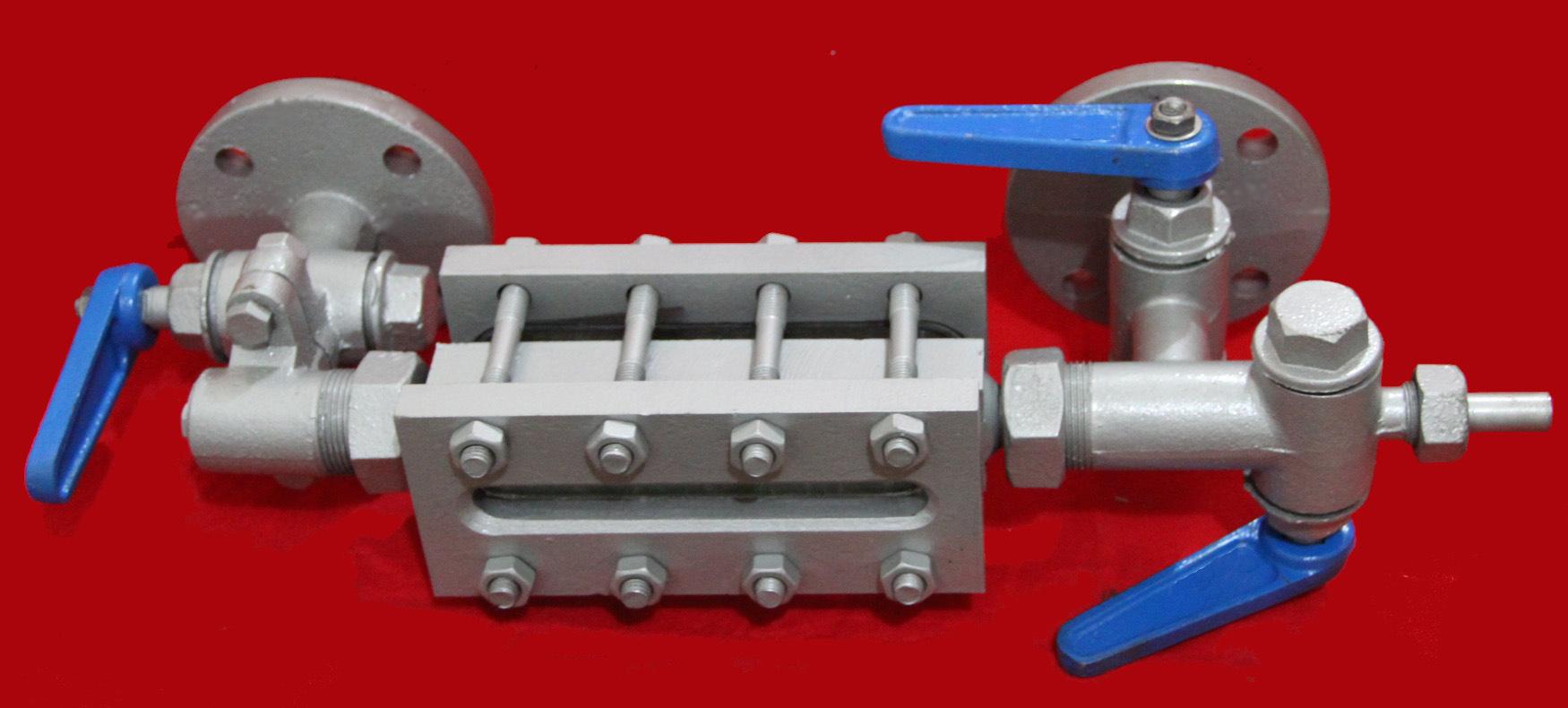 在上下閥內(nèi)裝有鋼球,當(dāng)玻璃板因意外事故破壞時(shí),鋼球在容器壓力作用下,自動(dòng)密封,防止容器內(nèi)的液體繼續(xù)外流。