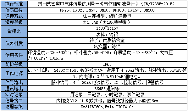 3、氣體羅茨流量計技術參數(shù)