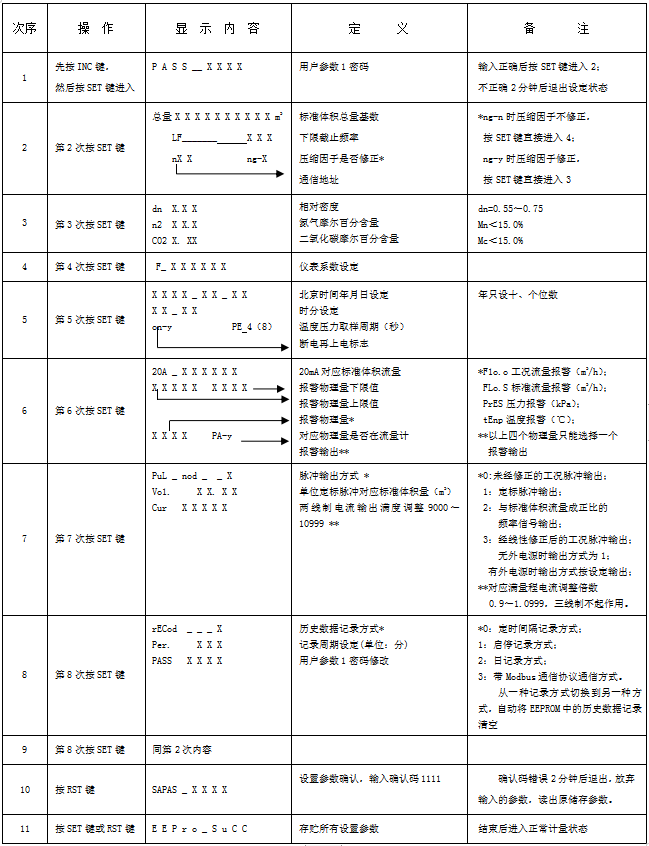 留意事項(xiàng):(1)參數(shù)設(shè)置時(shí),只要在*后屏幕呈現(xiàn)EEPro_suCC后進(jìn)入正常計(jì)量狀態(tài)才正確存入,否則設(shè)置無(wú)效。