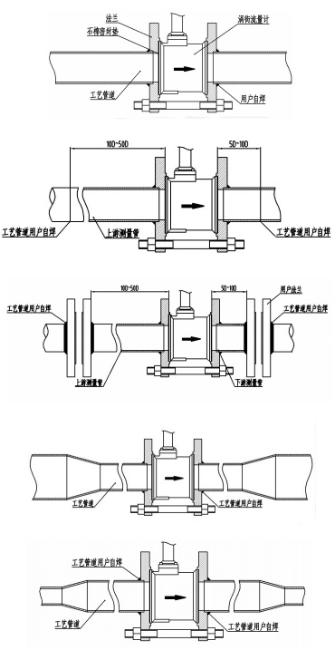 4、將流量計取下,把法蘭按請求焊接好,并清算管道內(nèi)一切凸出局部。