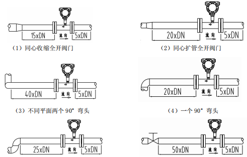 假如流量計的上游有彎頭、縮徑、擴徑、閥門等情形,則需求更長的直管段。