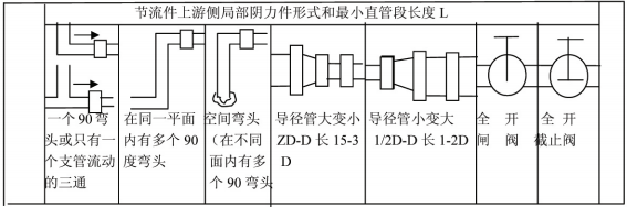 節(jié)流件上游側(cè)部分陰力件方式和*小直管段長度L