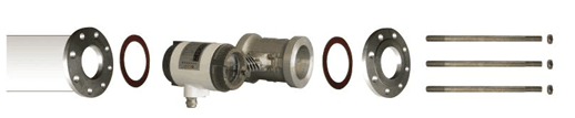 5、將焊好法蘭的管道移到裝置現場,把管道與傳感器裝置成一體,再裝置在管道上。